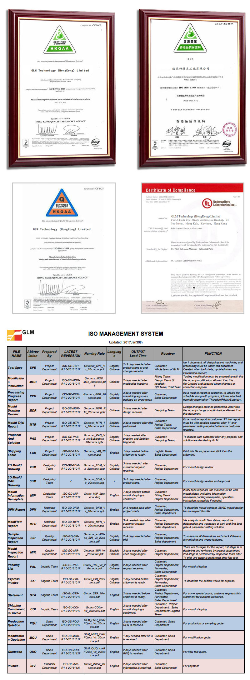 Up to now GLM has passed ISO9001:2008 and ISO14001:2004 and other related certifications, at GLM the ISO system is a real and effective existence, it helps us grow up and up continually.
